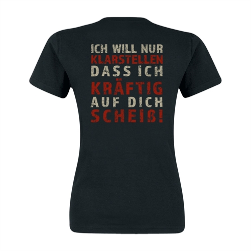 Schwarzes Girlie mit Siebdruckveredelung vorne und hinten.